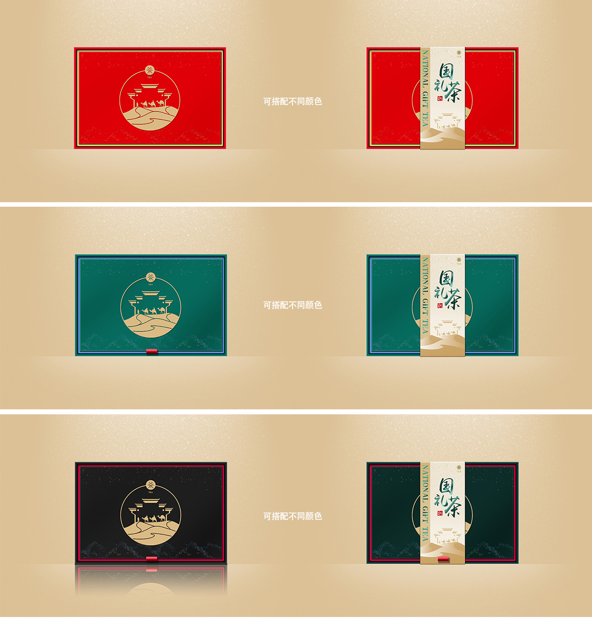 國禮茶:中國傳統(tǒng)吉祥元素等,顏色:中國紅、茶葉綠